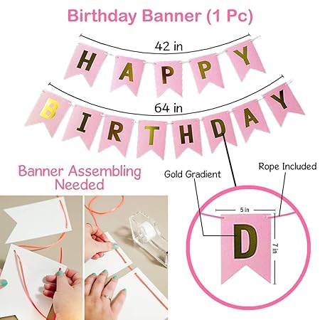 Party Propz 49-Pc Rose Gold Birthday Decoration Kit for Boys Happy Birthday Banner, Rose Gold Balloons & Party Decor Items | Birthday Party Decorations for Boys