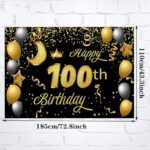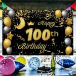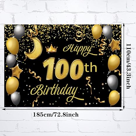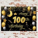 Sweet Happy 100th Birthday Backdrop Banner – Black & Gold Theme | 100th Birthday Party Decorations & Photo Background for Boys,