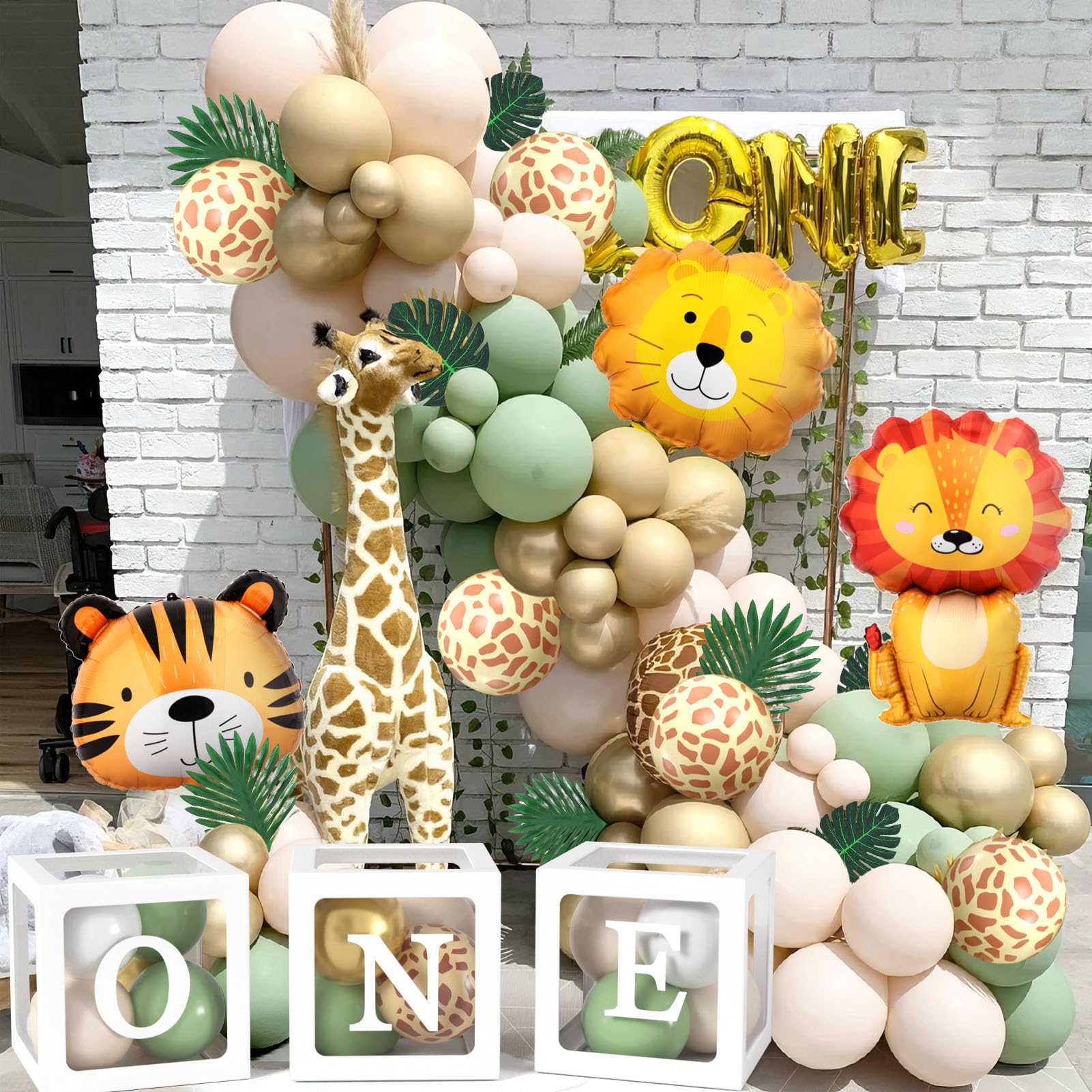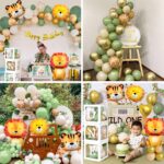 Safari 1st Birthday Decorations for Boys – “Wild One” Party Set with Sage Green Balloon Arch Kit & Balloon Boxes