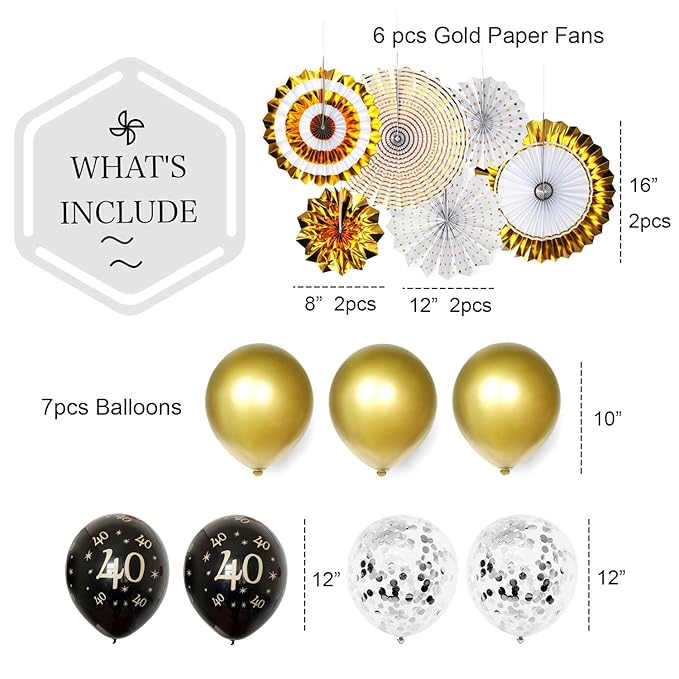Hombae 40th Birthday Decoration Kit – Elegant 40th Bday Décor for Men | “Cheers to 40 Years” Banner | 40th Anniversary & Birthday Party Supplies Set
