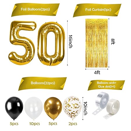Party Propz 50th Birthday Decoration Pack – 27 Pcs Set with Balloons, Banner & Party Props | 50 Years Celebration Decorations for Men, Dad’s 50th Birthday Kit
