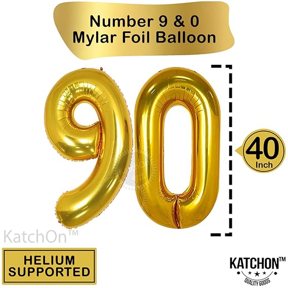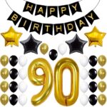 90th Birthday Decorations Party Supplies – Black & Gold Theme | Large Number 90 Foil Balloons