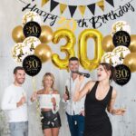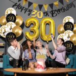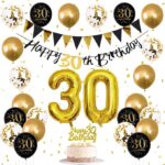 Women Happy 30th Balloons Black 30th Banner Cake Topper