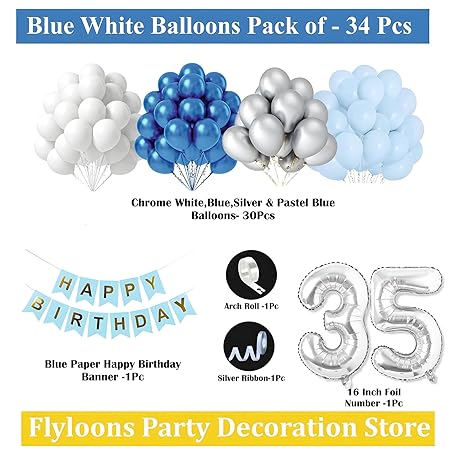 Flyloons 35th Birthday Decoration Items Blue and White Theme