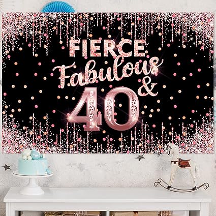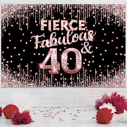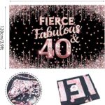 Happy 40th Birthday Backdrop Banner Fierce Fabulous and 40 Decorations for Women