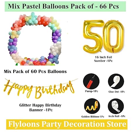 Mystic Toy Store Natural Latex Balloon, Paper Banner 50th Multicolour Birthday Decoration for Boy Girl Kid Men Women