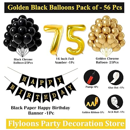 Be the first to review “Mystic Toy Store 75th Birthday Decoration Items for Black and Gold Theme Combination for Boys Girls | 50 Pcs Black Gold Balloon | Black Birthday Banner”