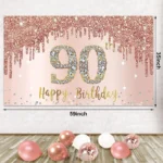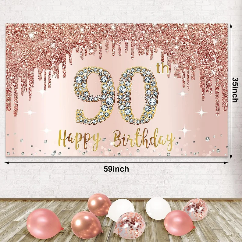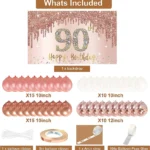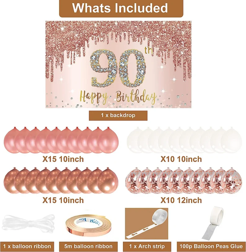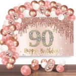 90th Birthday Backdrop And Balloon Garland Arch Decorations Rose Gold 90 Birthday Banner Balloon Set for Girls 90th Photo Booth Props