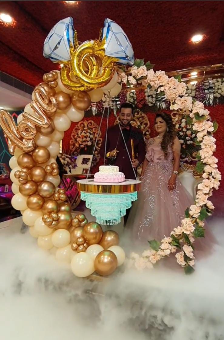 A stunning ring-themed decoration designed to create a glamorous and photo-perfect celebration backdrop.