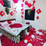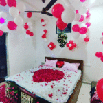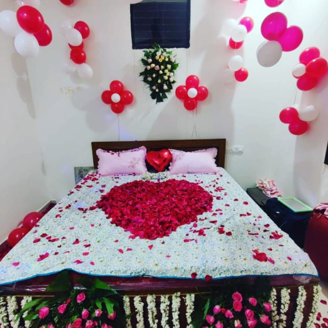 Nuptial Night Room Decoration with Flowers, Balloons & Rose Petals