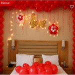 A cozy romantic bedside decoration designed to create a warm and intimate celebration setting.