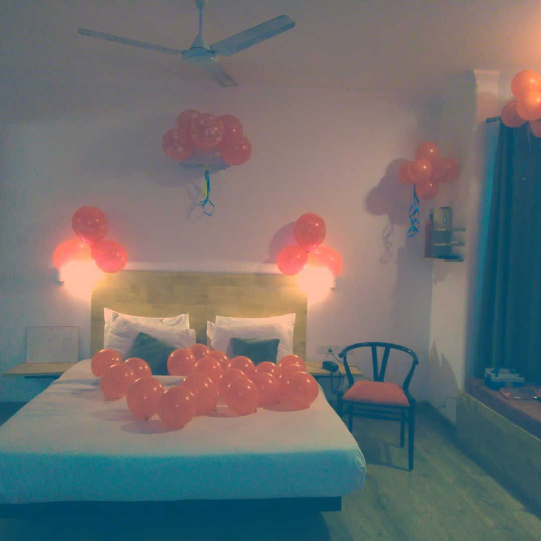 A cozy and charming room decoration designed for simple yet memorable celebrations.