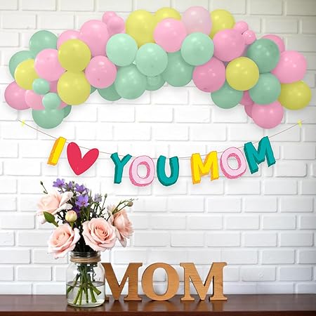 Happy Birthday Mom Party Décor Kit 16 Pcs Pastel Balloon & Banner Set