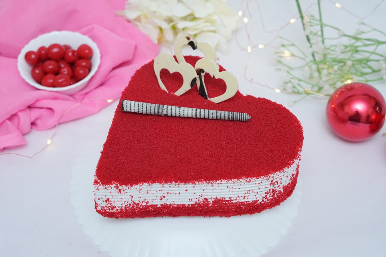 Red Velvet Heart – Smooth red velvet cake with creamy cheese frosting in a romantic heart shape.